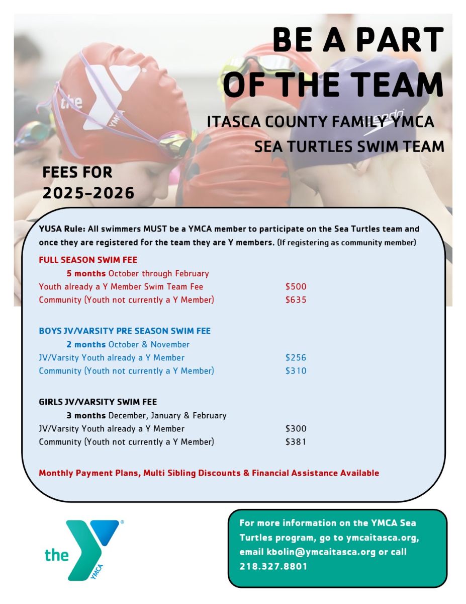 Financial assistance is available for swimmers. Please see the Membership Assistance tab on this website and follow the procedures for assistance. The YMCA also allows for month bank draft payments made for swim team fees and YMCA membership. Sibling discounts also available.